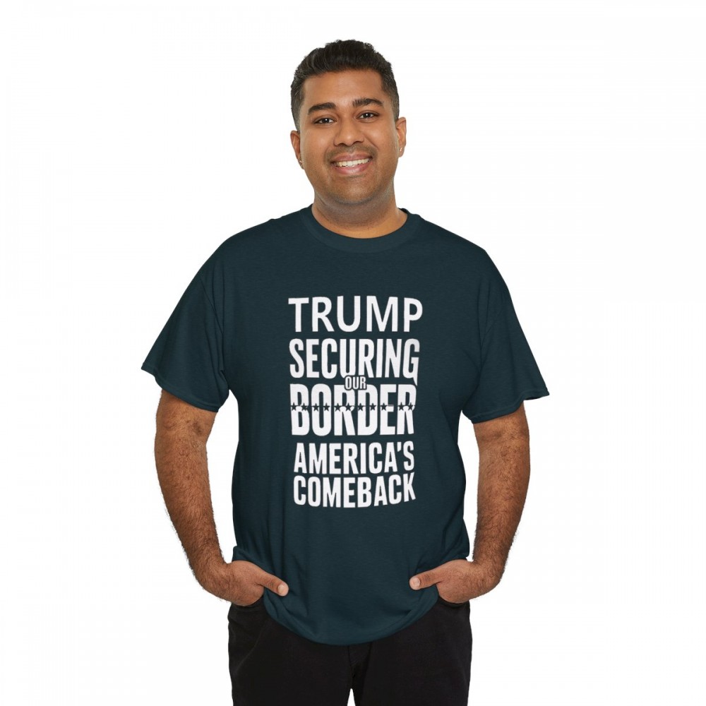 Celebrate America's resurgence with the "Trump Securing Our Border - America's Comeback" T-shirt from Faith Patriot Clothing. This design honors President Trump's commitment to strong borders and national security, symbolizing a brighter future for America. Made from high-quality, comfortable fabric, this T-shirt is perfect for rallies, political events, or everyday wear. Available in a variety of sizes, it’s an excellent choice for those who support secure borders and the restoration of American greatness. Wear the "Trump Securing Our Border" T-shirt to proudly display your support for President Trump and America's comeback. Stand firm with this powerful piece of patriotic apparel.